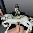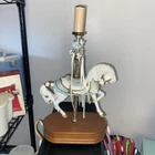 This vintage porcelain carousel horse lamp by House of Lloyd is a beautiful addition to any collection. The lamp features a colorful design with a horse subject, making it perfect for girls' rooms or nurseries. The lamp is made of high-quality porcelain material and comes with one lamp in the pack. The House of Lloyd collection is known for its unique and elegant designs, and this lamp is no exception. It's perfect for collectors or anyone looking to add a touch of vintage charm to their home decor. The lamp's multicolor design and intricate details make it a standout piece that will catch the eye of anyone who sees it.