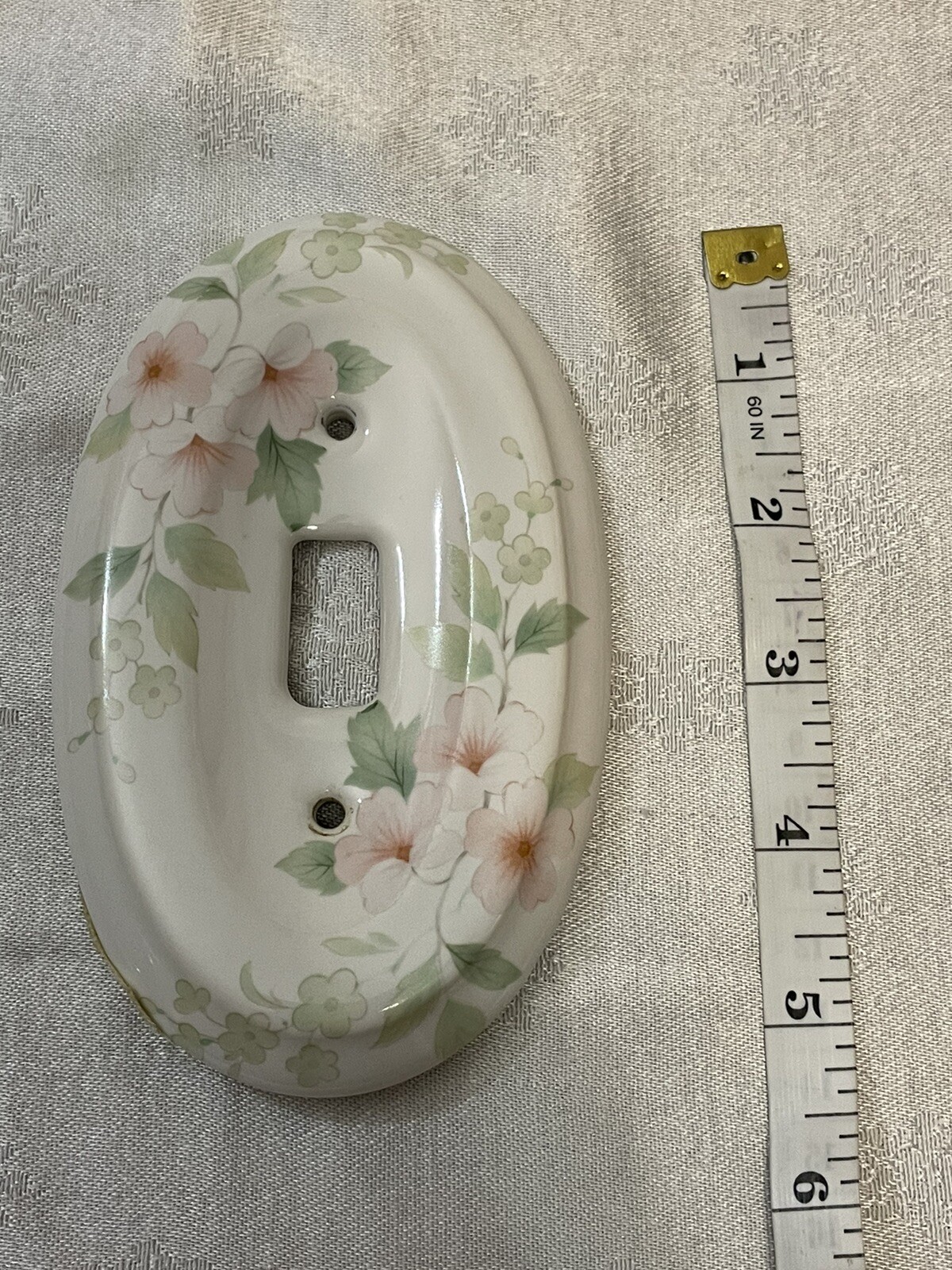 This vintage porcelain light switch cover plate is a beautiful addition to any collection. The delicate floral design in white and pink is sure to catch the eye of anyone who sees it. Made in the 1980s by 3r, this piece is a true original and perfect for those who love unique hardware. Crafted from high-quality porcelain, this switch plate is durable and will last for years to come. It is an ideal choice for those who want to add a touch of vintage charm to their home decor. Perfect for use in any room, this switch plate is a must-have for collectors and enthusiasts alike. Great condition- Smoke free home- Thanks for stopping in check out my online thrift stuff added daily much love Shelly J 💚