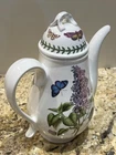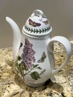 Gorgeous coffee pot from Portmeirion’s The Botanic Garden Lilac Collection. The lid handle is chipped on one side as shown in photo #10. This could be placed towards the back and out of sight (if the piece is only used for display of course 😌) Still a beautiful piece, nonetheless 🪻🦋🥰 Measures 10.25” tall (including top handle) 8” tall without top 9.5” from tip of spout to back of handle 3.25” base diameter