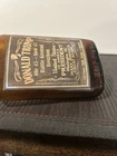 Authentic “Federal law forbids” Whiskey Flask with Circa 1957 date and Hazel Atlas glass company stamp on base. Comes with both cork and brilliant Gold Cap for whichever display style you prefer. Handcrafted label to commemorate Donald Trump with “Battleground Bourbon”..”Now available in red and blue states” and “making America great again since 2016” on sides of label. A fun edition to any man cave or in-home wet bar display, and is clean and ready to be used as a jacket pocket flask! *I combine and reduce shipping costs on multiple item purchases.