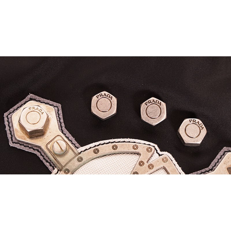 HTML 5 Template NEW PRADA 2011 Vintage Black Nylon Tessuto Saffiano Skull & Crossbones Crossbody Bag Size(s) Approx : W 11" × H 10" Strap: 49" Description Never used, comes with card, care booklet and dustbag. From 2011. From a rare Japan-exclusive release. No signs of wear but has wrinkles from storage. Photos are of the actual bag. Bag this size sells for $1,990. Authentic Prada crossbody bag in a bold punk rock style. Lightweight black Tessuto nylon. Gray Saffiano leather grinning skull-and-crossbones applique with brushed aged silver-tone hardware in the shape of bolts, gears, and screws—many engraved with the Prada logo. Adjustable webbed strap. Zip top closure. Front zipper pocket. Interior lined in signature Prada jacquard fabric with one zip pocket. Iconic Prada enamel triangle logo on front. Style VA0859. Made in Italy. A highly collectible vintage piece in unused condition. * All items are clean and from a non-smoking home. * ** Payment is expected within 5 days. Please read measurement carefully as sizes vary with designers, please ask for additional measurements if you are unsure. No refunds but exchange is permitted. Items are described as accurately as possible. In cases where refunds are sent the original shipping will not be refunded. All items are AUTHENTIC. Please ask all questions before purchasing. Thank you! **