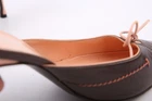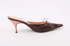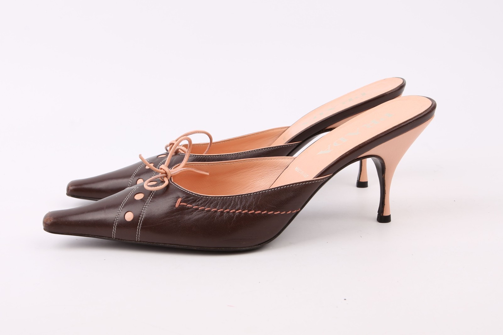 Color: Brown and Peach Exterior: The leather has minor wear to the pointed tips. The leather has minor creases from wear. Interior: The Prada logo has very slight fading. The interior soles have light wear. Soles: The soles have light scratches and signs of wear.