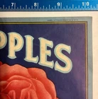 Please be sure to have a look at photos and condition description before deciding to buy. This is a used book with some wear and tear, which we've tried to thoroughly catalog. If there are any questions we've failed to answer here, please feel free to reach out to us. For speediest delivery, please select expedited shipping at checkout! Featured here is a vintage produce label, from "Rose Brand Apples." It features an illustration of two red roses on a navy blue background, with light blue trim. This label notes the packer as "J.M. Wade," in Wenatchee, Washington. Thanks for visiting, and have a beautiful day! shelf-19-ephemera
