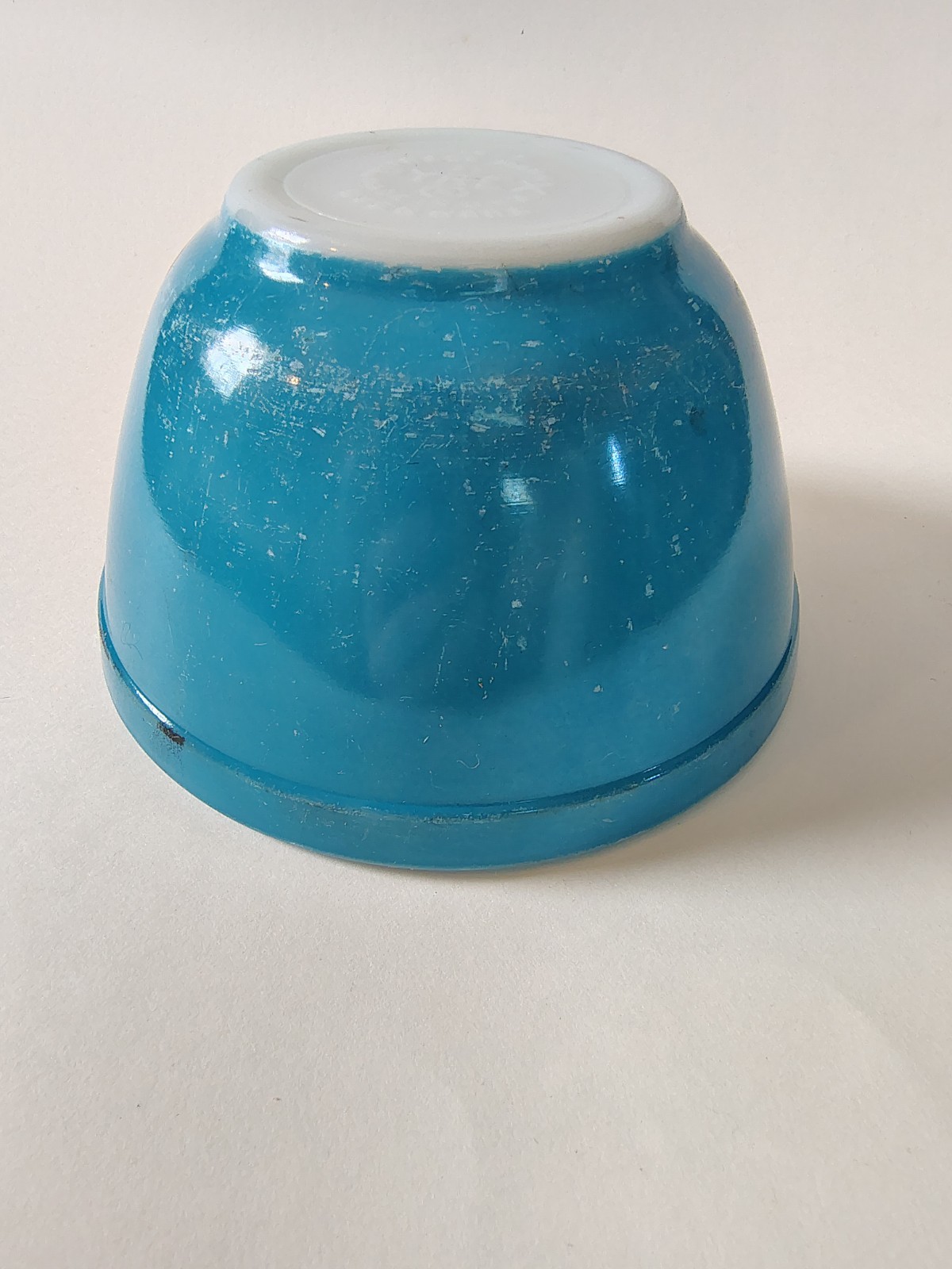 Vintage Pyrex 401 Blue 1.5-Pt Nesting Mixing Bowl with Distressed Finish