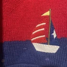 This Vintage Quacker Factory lighthouse nautical sweater is a colorful and nostalgic piece perfect for any woman's wardrobe. Made with a blend of ramie and cotton, this large size pullover sweater features a charming lighthouse applique on the front, giving it a unique and nautical theme. The red color adds a pop of brightness, while the crew neck and short sleeves make it comfortable and easy to wear. This 90s style sweater is a delightful addition for those who appreciate vintage fashion and coastal-inspired designs.
