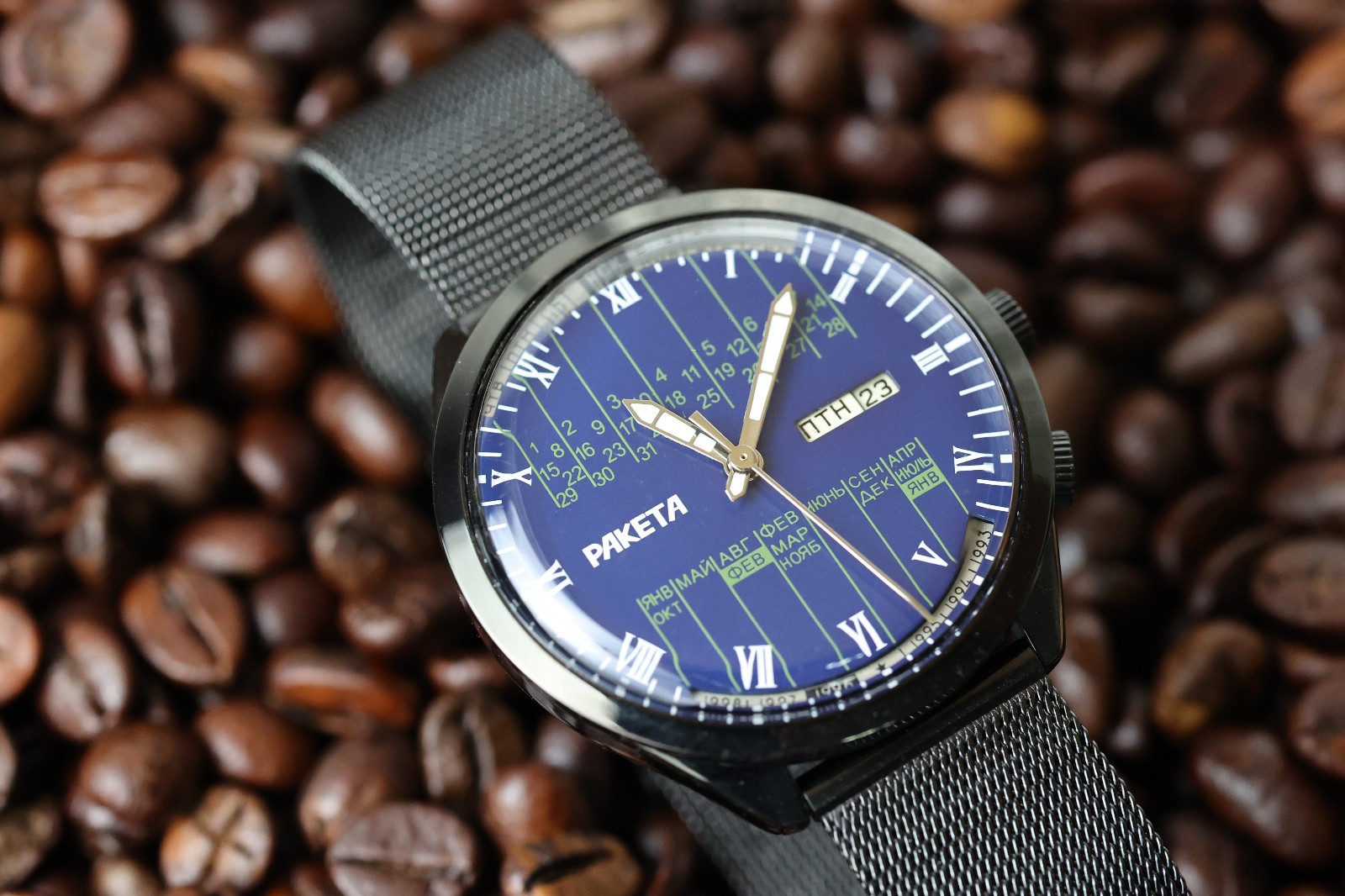 Soviet College Watch Perpetual Multi Year Calendar The watch has never been worn . For sale interesting USSR Raketa watch produced in 1980s-1990s. This watch features a perpetual multi-year calendar on the dial, which can be adjusted using the second crown. It is an iconic piece from the late Soviet era. The movement is mechanical cal.2628 H Lug width is 18mm. Watches are serviced by a professional watchmaker: The mechanical parts were oiled with special oil for watches Moebius (Swiss made) Wristwatches is Fully working, on precise and confident movement. SHIPPING: I ship to Worldwide. This item will be shipped to you from Europe (Ukraine). The item will arrive in 1-2-3 weeks to your place (it depends upon your country). I will arrange shipping to you within 3 days (Excluding weekend) after payment cleared.