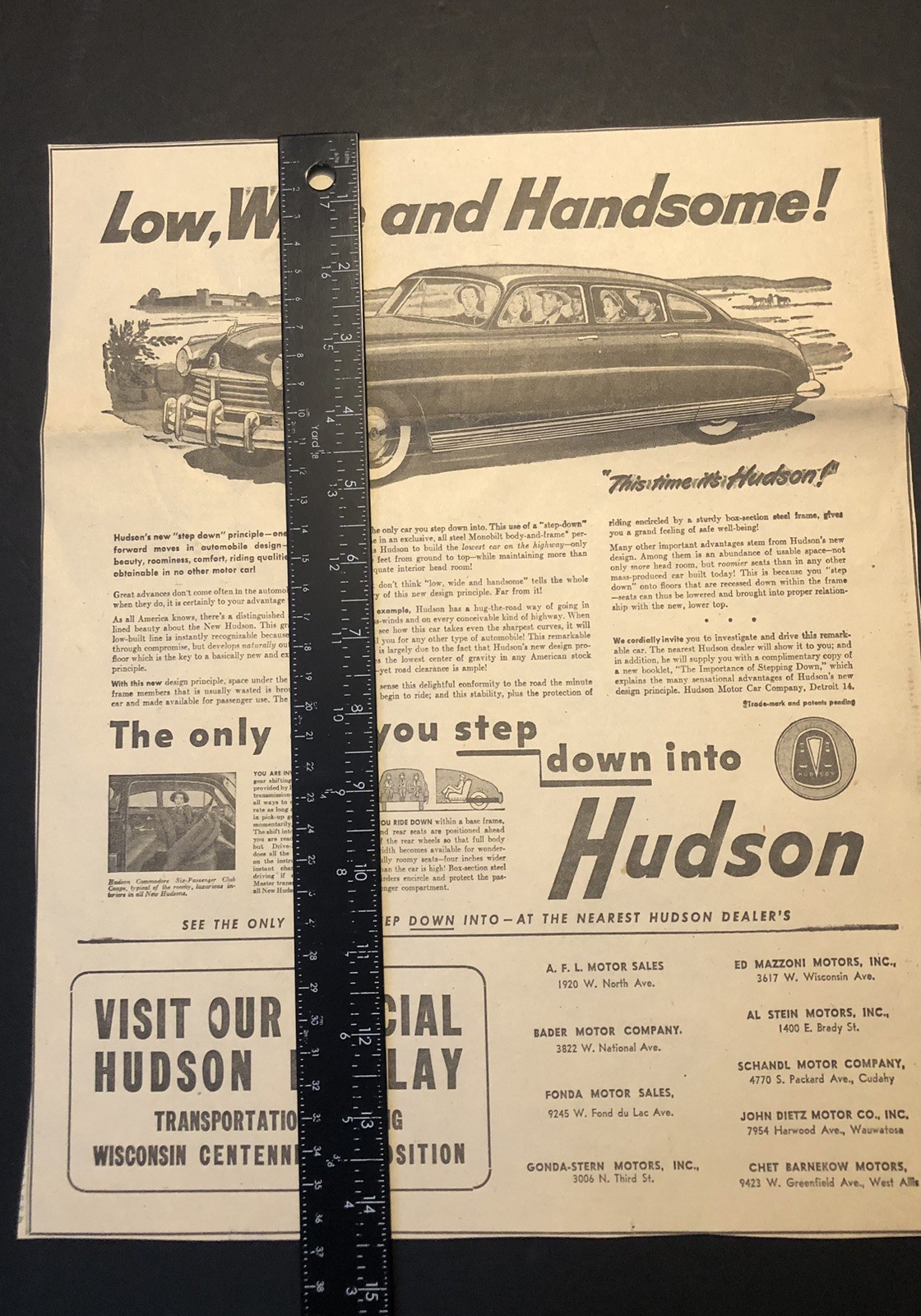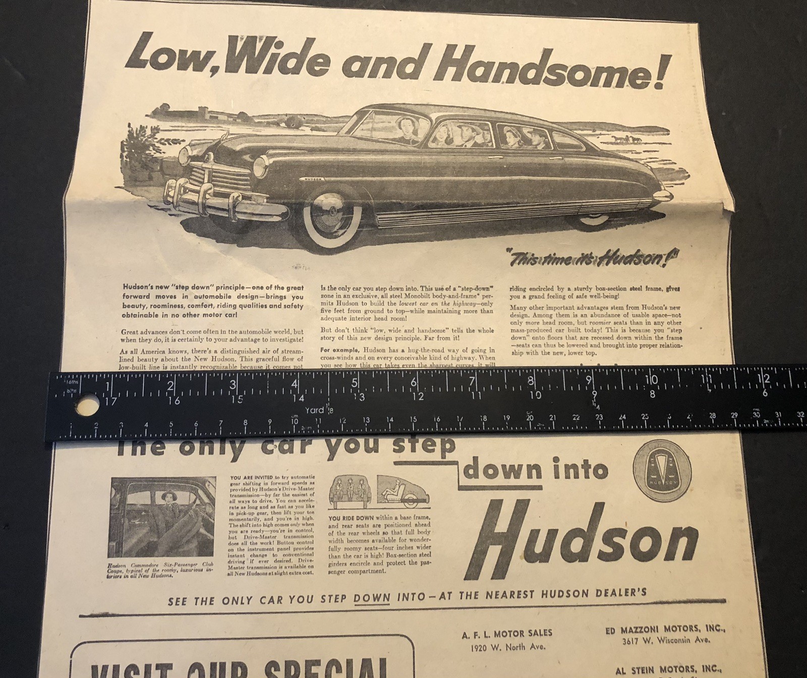 Vintage 1950’s Newspaper Ad Hudson Hornet Car Automobile Ad 0C25