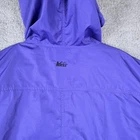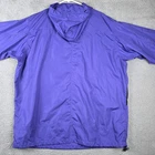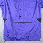 Authentic vintage REI piece (late 1980s–early 1990s era) Color: Vibrant purple with contrasting black panels on sleeves Size: XL (see measurements below) Material: 100% polyester shell — lightweight and durable Design: Half-zip / snap-front pullover style Adjustable drawstring hood & hem Large front kangaroo pocket with snap flap Elastic cuffs for a snug fit Classic REI mountain logo tag inside collar Pre-owned vintage condition. Light general wear consistent with age. No major rips, holes, or stains noted. Clean and ready to wear