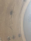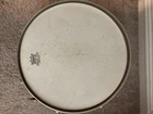 Slingerland Snare with oval Chicago badge. Scallop lugs. One lug covering is missing. It came off during Orchestra transport. It dates around the 1940s. Has good tone and plays well. I have used it on multiple occasions. Rims are engraved.