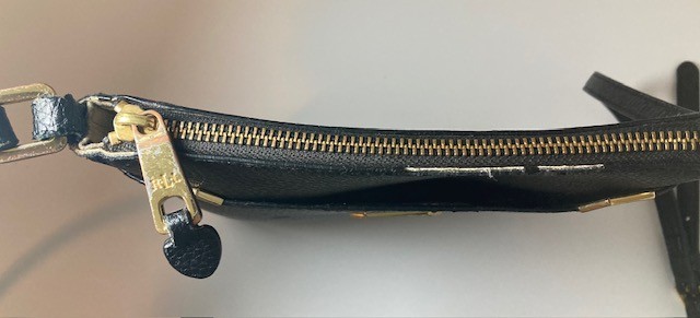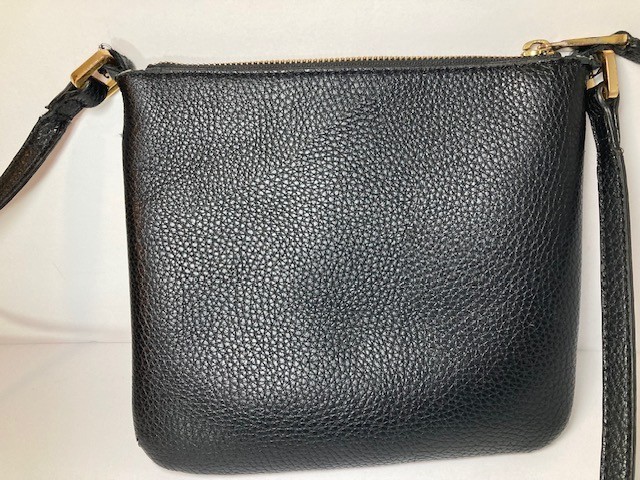 This listing is for a Vintage Ralph Lauren black pebbled leather crossbody purse with gold-tone hardware and an adjustable strap. The front features a raised RL gold logo plate , and the zipper pull also shows RL branding. Interior is lined with patterned Ralph Lauren fabric and includes manufacturing and material tags. Features (from photos): Black pebbled leather exterior Gold-tone hardware accents RL logo plate on front RL-branded zipper Adjustable leather crossbody strap (approx. 22" drop shown in photo) Interior lined with RL-patterned fabric Interior care/brand labels present Approx. dimensions: 8" wide × 7" tall (per your measurement image) Condition: Purse shows some wear, including marks on leather front A stylish Ralph Lauren essential with a vintage aesthetic. Ships with Care.