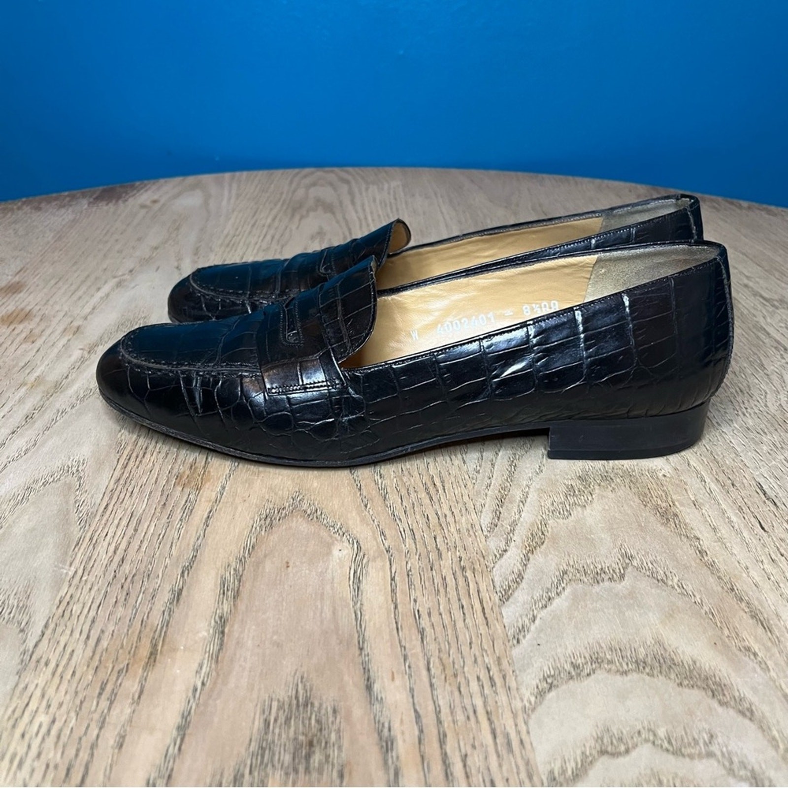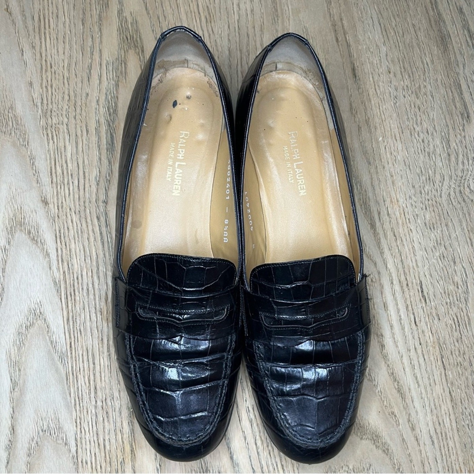 Vintage Ralph Lauren Italy Leather Embossed Croc Penny Loafers Womens Size 8.5AA wear on soles-pictured Women’s 8.5AA-narrow-fits closer to modern 7.5-8 Please review all photos!