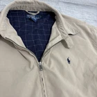 Vintage Polo Ralph Lauren Mens Large Tan Full Zip Harrington Jacket Plaid Lined See pics for measurements and any flaws In Great Condition, no major flaws, light visible wear shown in pics Flaws are noted if any Open to all offers!! Sold as is no returns If you have any questions or want more pics just contact me