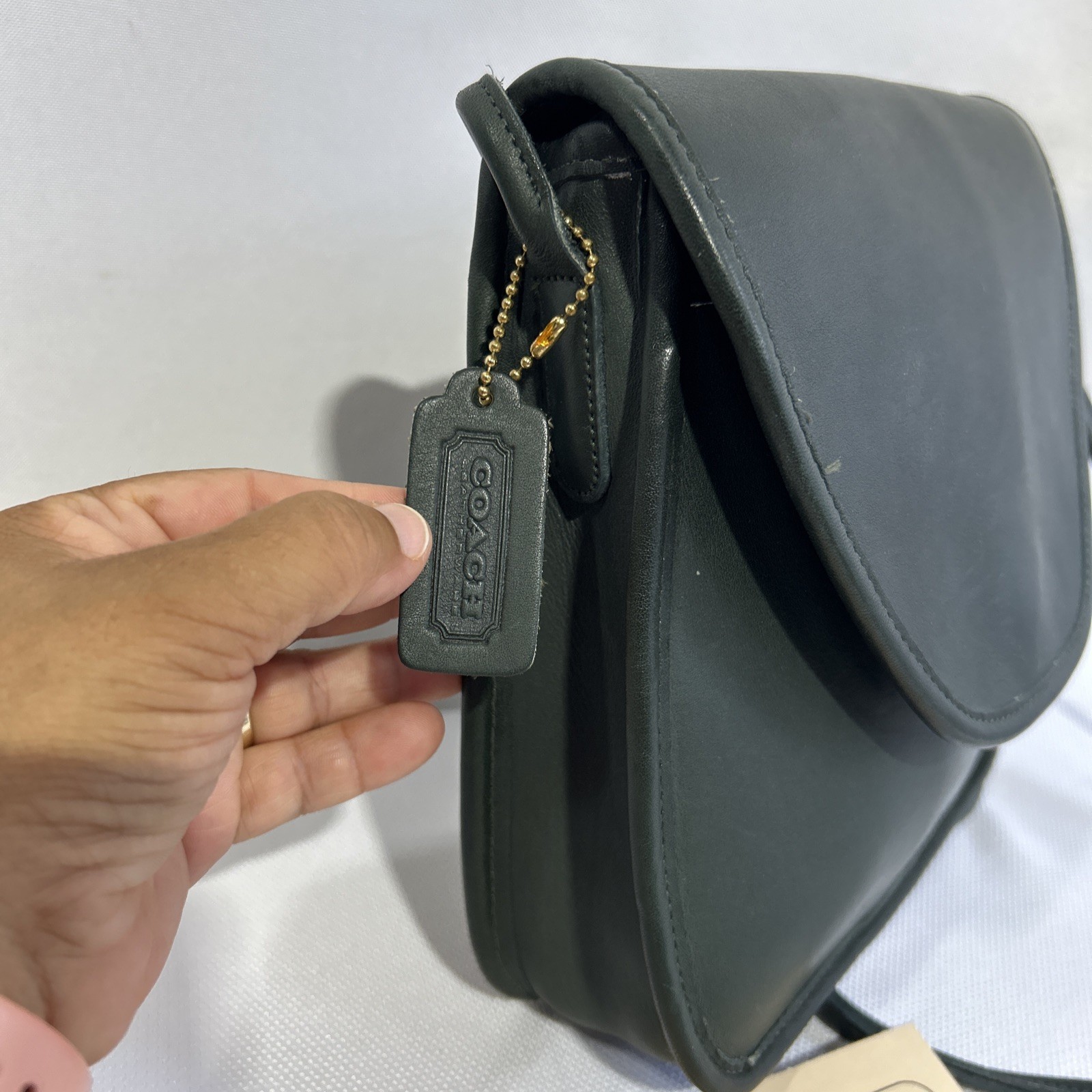 Vintage Rare Coach Lindsay Crossbody Bag Forest Green Leather 80’90’s #0439 136