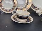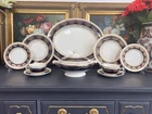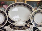 It’s is really rare found crown Ducal made in England around 1920 is very unique piece for you 1 big serving platter 16 1/4” by 13 1/4” 1 Serving bowl with lid 10” 2 Salad plates 9” each 2 Bread and butter plates 6.7/8” each 2 cups 2 saucers Thank you