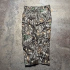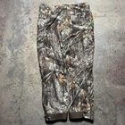 Vintage Realtree camo cargo pants by realtree in size 2XL. These green canvas pants feature a camouflage pattern, button accents, and a logo. With a relaxed fit and 5-pocket design, they are perfect for casual or workwear occasions. The pants have a 38 inch waist and a 31 inch inseam, making them ideal for a comfortable and stylish look with a touch of American and modern themes.