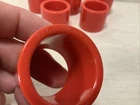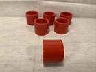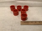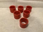 Vintage Red Lucite Plastic Acrylic Napkin Rings Hong Kong Set Of 6 Unique Used clean condition. Small chip on one edge. Please see pictures.