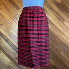 Classic red and black plaid pencil skirt is a staple piece for your closet that will never go out of style. Subtle yellow stripes set this apart from buffalo plaid and make it less casual. Fully lined. Side closure with zip ans button. Condition: Excellent Flaws: None Brand: Pendleton Materials: Wool Please review measurements before purchasing and feel free to ask any questions. All sales are final. Open to reasonable offers. Measurements taken while flat: Waist: 28 Hips: 40 Length: 24 Labeled a 10 - fits more like a 4/6