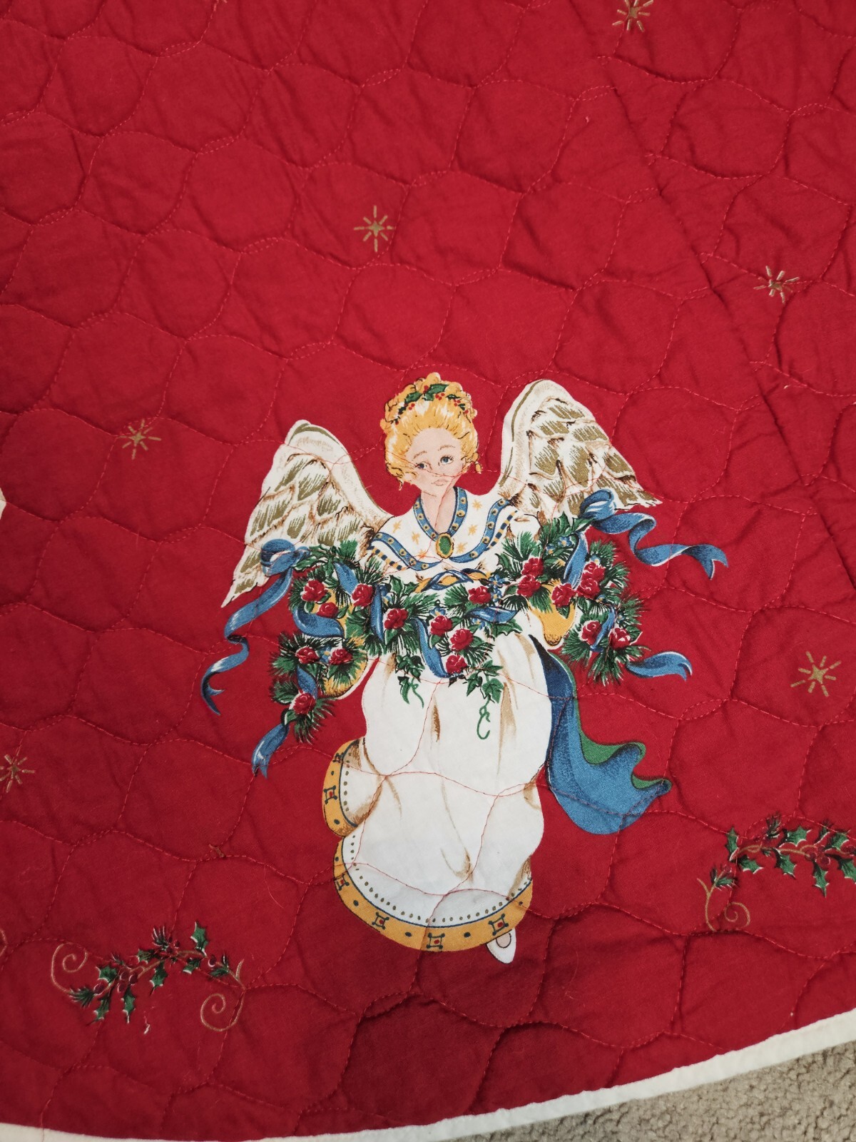 Vintage Handmade Red Quilted Christmas Tree Skirt Victorian Angels 54" x 54" V41 In excellent condition Vintage Handmade Red Quilted Christmas Tree Skirt Victorian Angels 54" x 54". Features handmade red quilted cotton Christmas tree skirt, Victorian angels around tree skirt in different scenes and outfits, large back slit, vintage tree skirt. Measurements diameter 54" This is a pre-owned item that may show signs of wear. In excellent condition, no flaws. 14 Day returns accepted under the following conditions: Item must be in the same condition as stated If item shows additional wear buyer will receive a partial refund Buyer pays all shipping costs Refund amount will be for the item price only Please contact me prior to starting a return