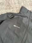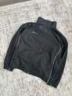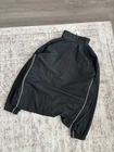 This vintage Reebok men's windbreaker jacket in size M features a classic black color with the iconic Reebok logo accent. Made from polyester softshell material, it has a full zip closure, a stand-up collar, and a short jacket length. This 90s-inspired piece is designed for winter, fall, and spring seasons, offering a lightweight and regular fit for various activities like track & field, tennis, soccer, lacrosse, and running. Perfect for travel, parties, or casual wear, this Y2K style jacket combines retro vibes with functional features for a timeless look. Small stain on sleeve Length 28 Width 23 Arm sleeve 23.5