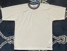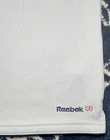 A vintage Reebok men's t-shirt in size XL, featuring a solid white color with a crew neckline and short sleeves. Made of polyester material, this regular fit shirt is machine washable and suitable for all seasons. It has a classic design and is crafted in the United States.