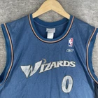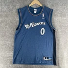 Embrace the spirit of the game with this vintage Reebok NBA Washington Wizards jersey. Once donned by the renowned Gilbert Arenas, the jersey bears the number 0 and is a must-have for any dedicated fan or collector. Its striking blue color captures the vibrancy of Wizards pride, while the large size ensures a comfortable fit for everyday wear. Crafted with attention to detail, this officially licensed piece reflects the quality and heritage of both the Reebok brand and the National Basketball Association. Whether you're attending a regular-season game or simply showing your team loyalty around town, this jersey is a timeless addition to any basketball enthusiast's wardrobe.