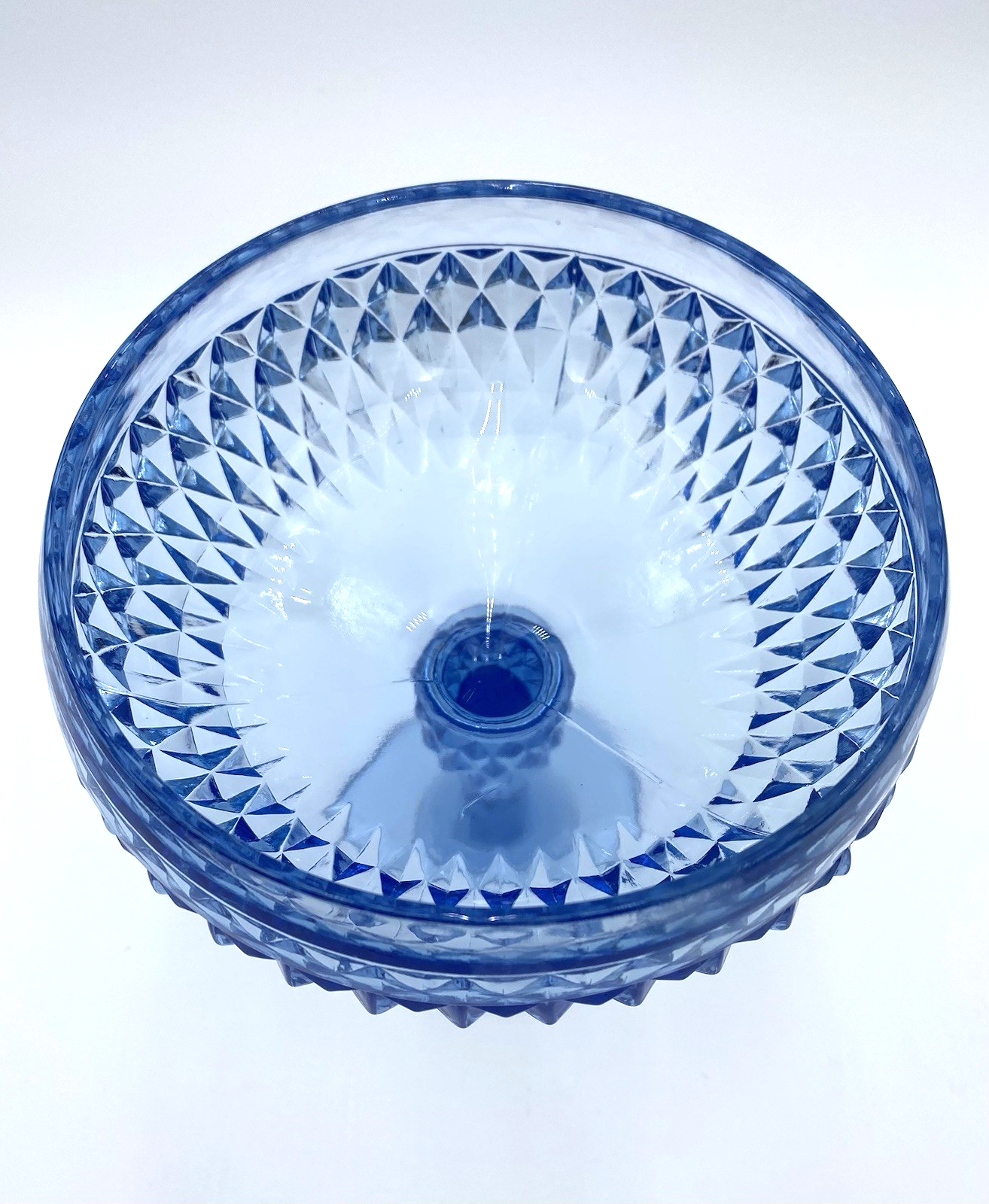 This stunning blue compote adds such elegance to my dining table! The diamond pattern catches the light beautifully and the quality feels substantial yet delicate. Perfect for displaying fruit or as a standalone decorative piece.