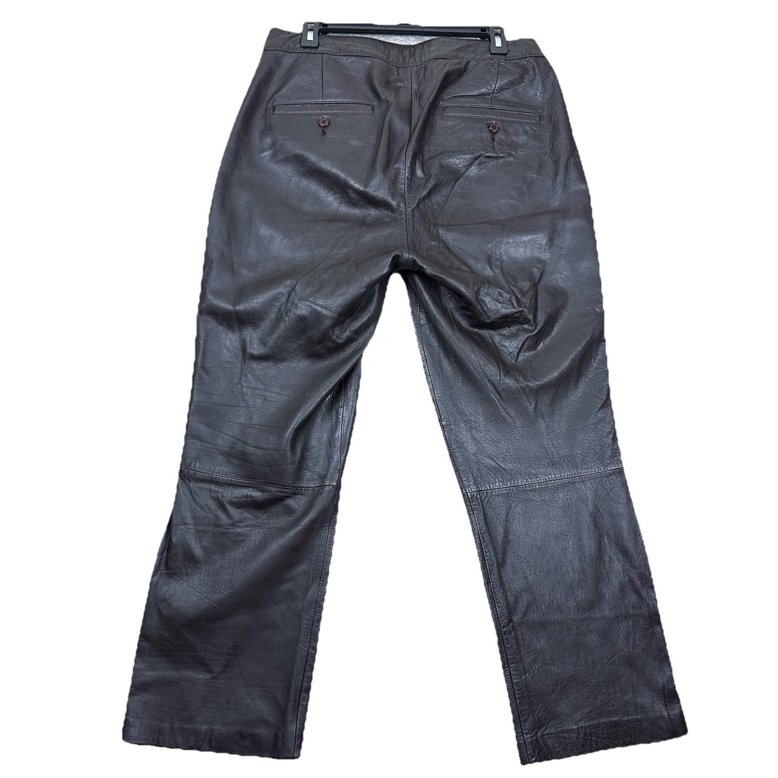 Authentic vintage leather pants in a rich brown shade with a classic straight leg cut. Designed by Rem Garson, these trousers feature a soft, broken-in texture with natural patina and creasing that showcase their age and quality. Verified vintage: Produced before 2000 based on label style and construction details. The supple brown leather pairs perfectly with cozy sweaters, neutral tops, or boots, making them a standout retro statement piece for fall, concerts, or streetwear-inspired outfits. Condition: Pre-owned in good vintage condition. Leather is supple with patina, creasing, and light wear consistent with age. See photos for details. Measurements (flat lay, approx.) • Waist: 16 in • Rise: 12 in • Inseam: 26 in • Length: 39 in • Leg opening: 8 in Material: Genuine leather (with polyester lining). All measurements are approximate. See photos. Simply1Awesome offers quality items with fast shipping. Questions welcome. #VintageStyle #LeatherPants #RetroFashion #Streetwear #WomensStyle vintage, edgy, minimalist