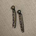 Vintage Retro Aurora Borealis Crystal Cup Chain Fringe Drop Earrings Long. Condition is Pre-owned. Shipped with USPS Ground Advantage.