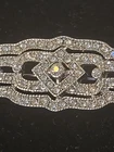 This Vintage Rhinestone Brooch Pin is a stunning piece of jewelry featuring a rectangular shape with a round white crystal as the main stone. The brooch has a Victorian and Art Deco design, measuring 2.5 inches in length. It is rhodium plated and showcases retro beauty, making it ideal for various occasions like engagements, anniversaries, birthdays, and more. This vintage piece is a lovely addition to any fashion collection.