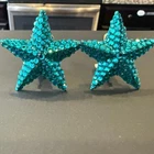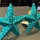 Vintage Richard Kerr aqua starfish statement clip-on earrings that bring full ocean energy with zero subtlety. These iconic 1980s beauties are covered in vibrant teal to petroleum blue pavé rhinestones, set on Kerr’s signature resin base. Bold, dimensional, and unapologetically fun. The kind of earrings that are the outfit. Shown worn for scale. They sit beautifully on the ear and instantly elevate even the simplest look. Perfect for beach weddings, resort wear, summer nights, or when you just want to feel like the main character near water. Details Era: 1980s Designer: Richard Kerr (signed) Style: Starfish statement Color: Aqua teal / petroleum blue Materials: Faceted rhinestones on resin Backing: Clip-on Size: Approx 1.5 to 1.75 inches Condition Very good vintage condition. Strong sparkle throughout with no major stone loss noted. Some visible wear to clip pads on backs (shown in photos) and minor age-related wear to hardware, typical for vintage Kerr pieces. Fully wearable as is. Signed on back Highly collectible designer Statement size without being too heavy Photographs insanely well (hello content girls)