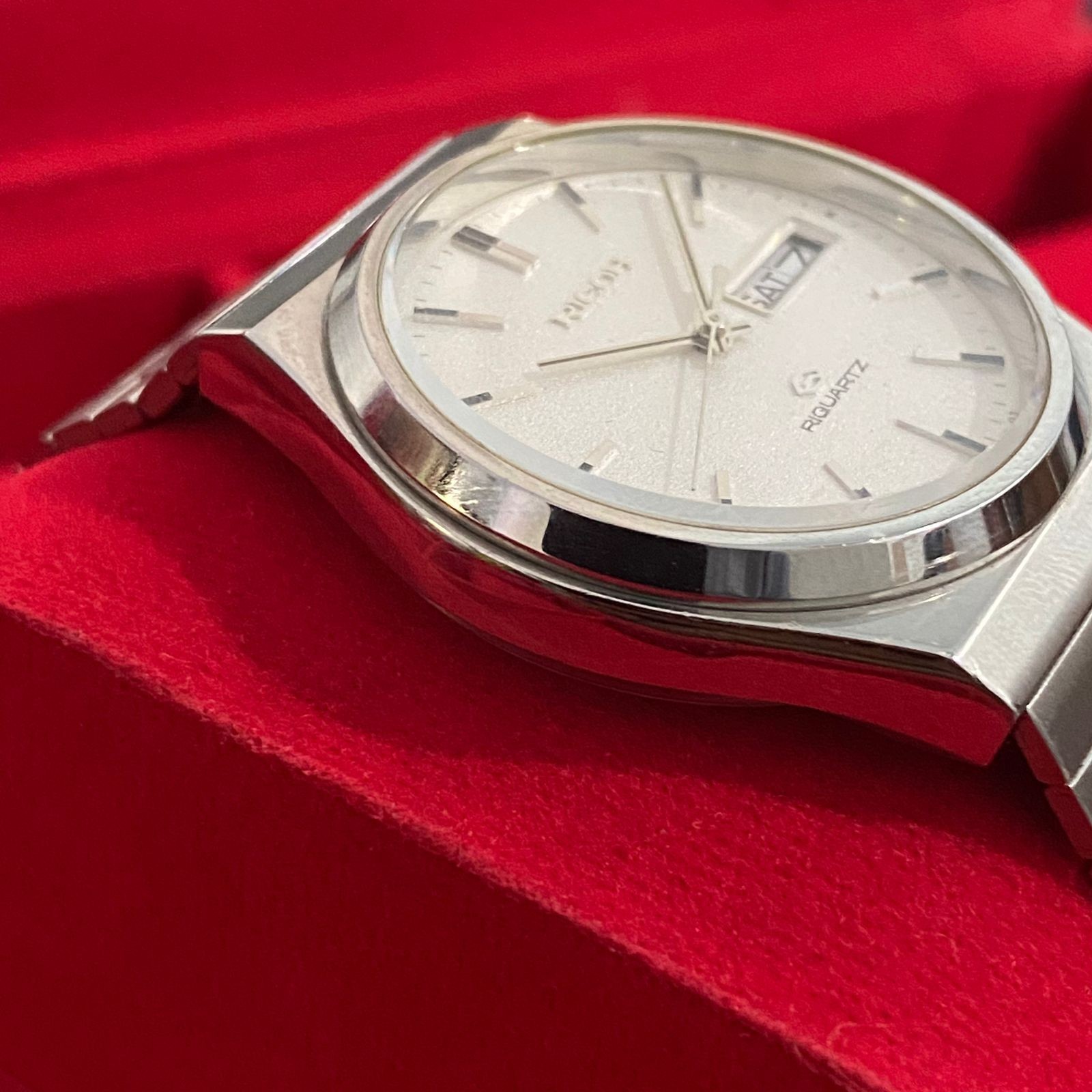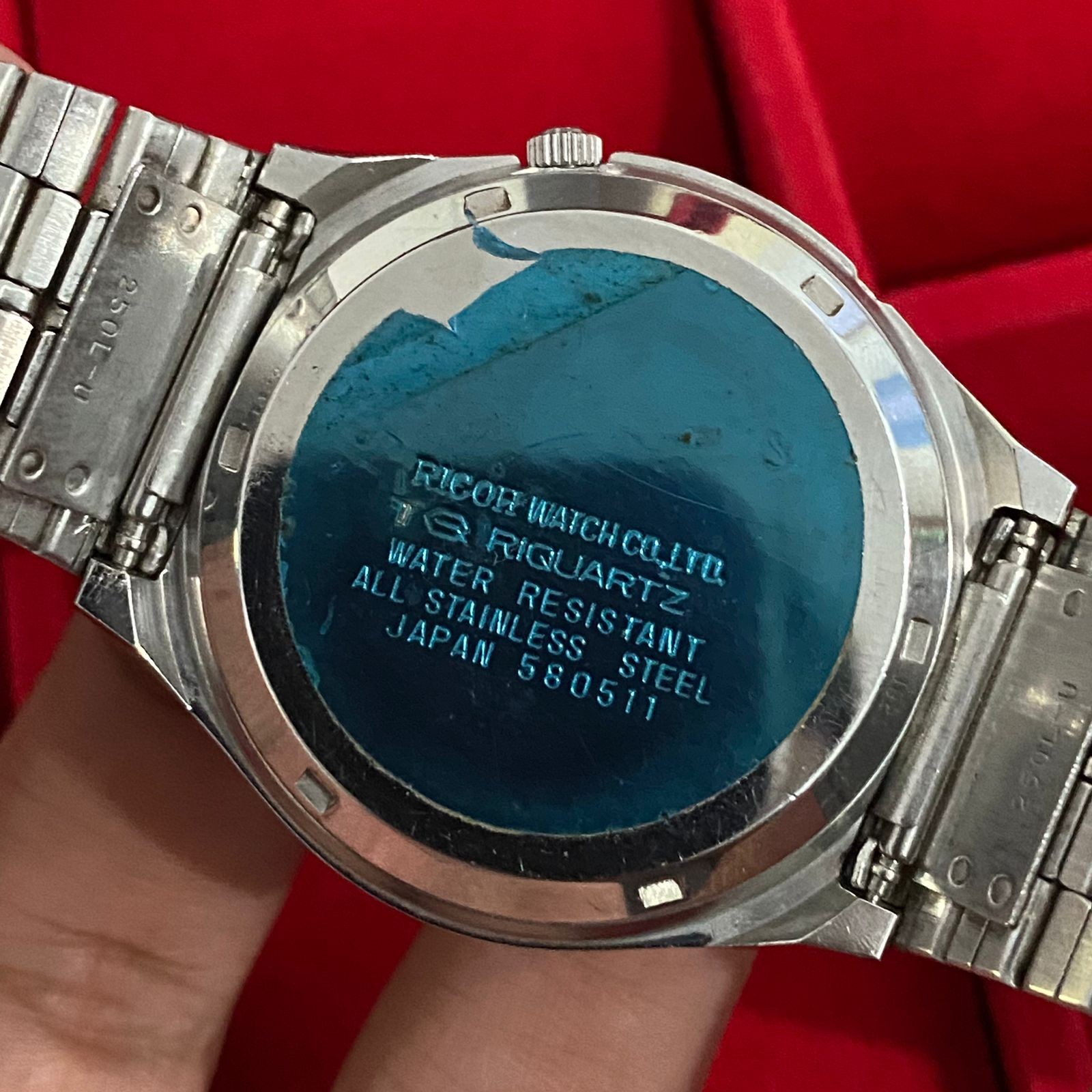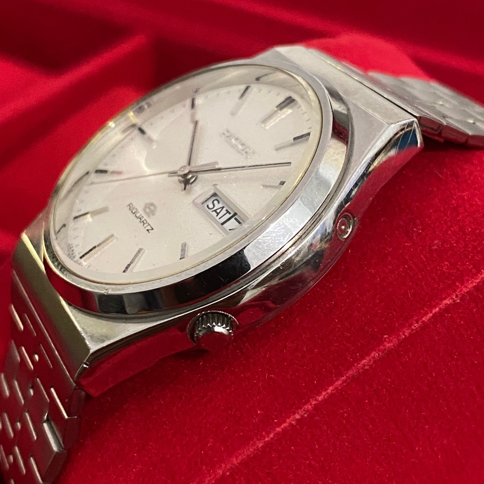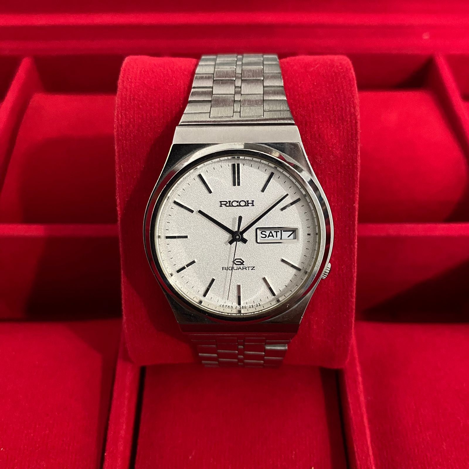 Rare Ricoh Riquartz Day Date White Dial Snow Stanless Steel Vintage Watch Ricoh Riquartz QuartzMovement White Dial Diameter 35.7mm Include Crown Watch Only with Replace Box Shipping , Returns and Sales Terms,: ------------------------------------------- We ship worldwide via Fedex or DHL Express We not accept Return We do combine shipping we not responsibility for Import duties, taxes, and charges , so please check in your country's customs office to determine what these additional costs will be prior to bidding or buying. Please check the item condition and photos carefully before buy or make your bid and Please don't buy/bid if you don't have any intention to buy. Once you make your buy/bid, it means that you are willing to buy it and also willing to pay for the final value and shipping cost. Any condition that is not describe on item's description but shown in photos will be considered as described. Sold As Photo, no return accepted. If you bid and win the auction means that you already understand and accept the item condition as describe above.
