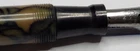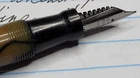 This is a beautiful old flat-top Ritrie fountain pen. Although the clip is missing and you can see a couple of holes where it used to be, the pen is in excellent condition. It is most likely from the thirties. The nib, however, is a new replacement, making this an instrument that is a joy to write with.