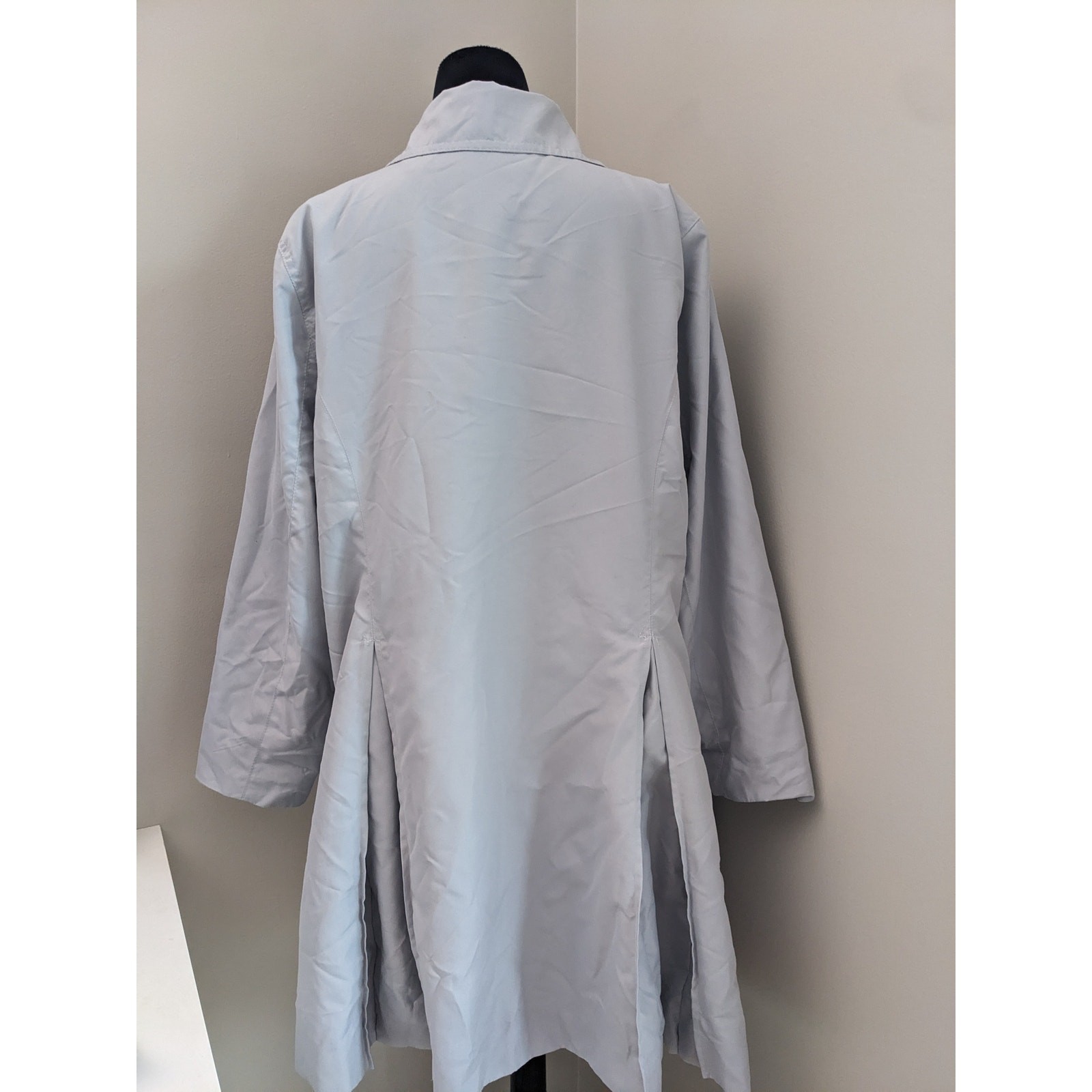 Vintage Roaman's Women Pleated Trench Coat Size 22W Light Grey/Blue *COLOR IS A GREY WITH BLUE UNDERTONE. The bottom are pleated Pit to Pit: 26in Length: 37in Sleeve length: 22in Measurements are made laying flat Any callouts or significant wear will be included in this description. This item is pre-owned and shows signs of general wear. Signs of wear can include things like fading of color, not in a perfect shape, weakened seams, item being worn and washed. Please refer to the photos for reference.