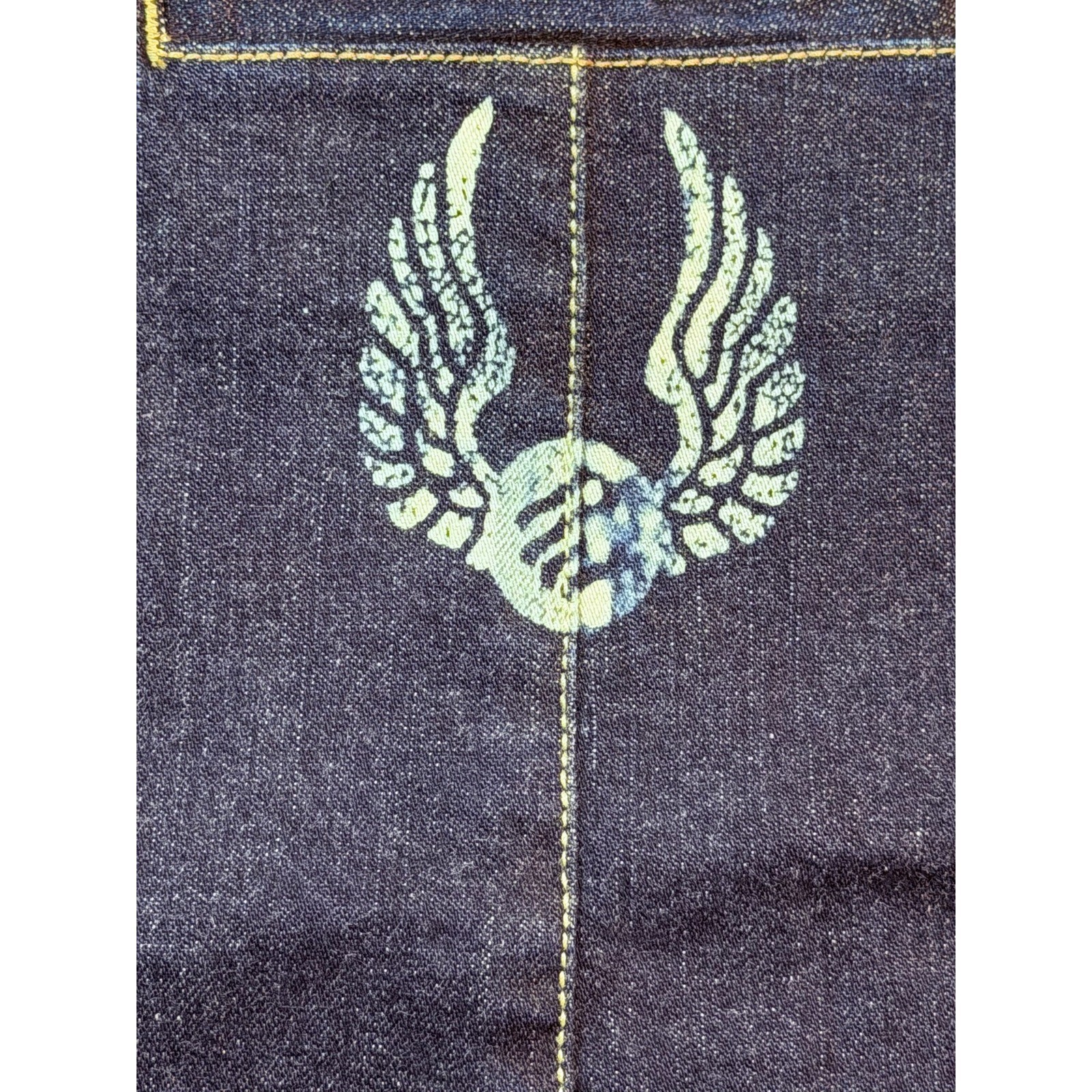 Dark wash denim mini skirt with a pleated front design and contrast stitching. This vintage piece features an embroidered logo on the front hem and a winged graphic on the back pocket. Constructed from a comfortable cotton-spandex blend, it includes classic belt loops and a zip fly with button closure for a secure fit. Measurements: • Waist: 30" • Length: 18" Brand: Rocawear Style: Pleated Denim Mini Skirt Color: Indigo (IND) Material: 98% Cotton, 2% Spandex Size: 5/6 Pattern: Solid with Embroidery Closure: Zip Fly Keywords: Y2K, Streetwear, Hip Hop, Vintage Style, Pleated Skirt, Denim Mini, Embroidered, Dark Wash, Retro, 90s Aesthetic, Urban Fashion, Rocawear Denim, Anime, NWT