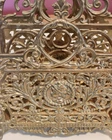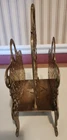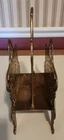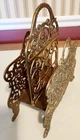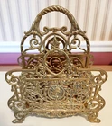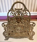 Vintage Ornate Filigree Heavy Brass 2 Section Magazine Holder. This has many uses, letters, bible, sheet music, or books! The holder is 12" tall x 10" wide. The space between each section is about 1.75" wide. In Good Used Condition, some normal patina and use seen from age.