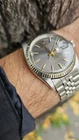 Elevate your ensemble with the timeless elegance of a vintage Rolex Datejust, model 1601, featuring a classic pie-pan gray sunburst dial complemented by baton indexes and a fluted white bezel. Crafted with a robust 36mm stainless steel case and Jubilee band, this Swiss-made wristwatch embodies the perfect fusion of form and function for the discerning gentleman. With its intrinsic 26 jewels, the watch operates on a reliable mechanical (automatic) movement and boasts notable features such as a date indicator and chronometer precision. A testament to its heritage, this 1973 timepiece retains the sophistication of its era, making it a stunning addition to any collection or a standout accessory for formal occasions. I am so excited to be able to offer you a gorgeous vintage Rolex Oyster Perpetual Datejust Ref.1601 men's automatic watch. Rare gray dial never retouched The stainless steel Oyster case, screw down caseback, white gold fluted bezel and crystal are all in good condition for its age. The dial is fitted with gold hands and a date window at 3 o'clock position which is a great asset to this vintage. The robust 36mm stainless steel Oyster case with a screw down Rolex crown and Rolex Jubilee bracelet have remained in good condition with general wear but no significant damage. In fully working order- runs strong and tells good time, powered by a reliable Rolex 1570 movement with 26 jewels. Reference and serial numbers are both sharp and strong. Serial number 347**** says it dates to 1973. The original Rolex Jubilee bracelet will fit up to 7.2 inches wrist. The crystal has been replaced with the new one just before listing this Beauty. You will get exactly what you see. The pictures say it all. Please check all my pictures for more details as they are the best description of the watch much better than I could. I will ship the watch to your door using FedEx International Priority. Expected to arrive in 3~5 days of shipping. No box or papers are included. I do accept PayPal, Sir..... Please note, the buyers are responsible for import and duty fees. I am so grateful you have visited my E-house. Thanks for your attention !!