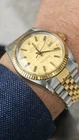 The Vintage Rolex Datejust 16013 Champagne Linen Dial Men's Automatic Watch from 1984 is a luxurious timepiece with a classic design. Featuring a gold bezel, stainless steel case, and a champagne dial with baton indexes, this watch exudes elegance and sophistication. With 27 jewels and a mechanical automatic movement, this Rolex model is a reliable and stylish choice for any formal occasion. The Rolex Jubilee band and screwback caseback add to the watch's timeless appeal, making it a sought-after piece for collectors and watch enthusiasts. I am so excited to be able to offer you a gorgeous vintage Rolex Oyster Perpetual Datejust Ref.16013 men's automatic watch. The stainless steel Oyster case, screw down caseback, yellow gold fluted bezel and crystal are all in good condition for its age. The dial is fitted with gold hands & markers and a date window at 3 o'clock position which is a great asset to this vintage. The robust 36mm stainless steel Oyster case with a screw down Rolex crown and Rolex Jubilee bracelet have remained in good condition with general wear but no significant damage. In fully working order- runs strong and tells good time, powered by a reliable Rolex 3035 movement with 27 jewels. Reference and serial numbers are both sharp and strong. Serial number 818**** says it dates to 1984. The original Rolex 18k gold & stainless steel Jubilee bracelet will fit up to 7.3 inches wrist. You will get exactly what you see. The pictures say it all. Please check all my pictures for more details as they are the best description of the watch much better than I could. I will ship the watch to your door using FedEx International Priority. Expected to arrive in 3~5 days of shipping. No box or papers are included. Please note, the buyers are responsible for import and duty fees. I am so grateful you have visited my E-house, Sir...... Thanks for your attention !!