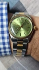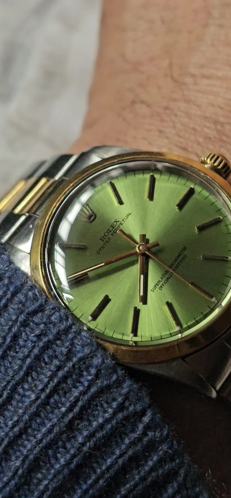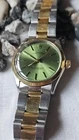 The vintage Rolex Oyster Perpetual 1002 F men's automatic watch is a rare find from 1977. Featuring a classic design with a 34mm stainless steel case and smooth gold bezel, this timepiece exudes elegance. The sunburst gold dial showcases stick indexes and is powered by a 26-jewel mechanical automatic movement certified as a chronometer. With a Rolex Oyster band in stainless steel and yellow gold, this Swiss-made watch is a timeless piece for formal occasions. The watch does not come with papers or original packaging. I am so excited to be able to offer you a gorgeous and special vintage Rolex Oyster Perpetual Ref.1002 F men's automatic watch. Superb & Supreme Rare Rolex logo on endlinks The stainless steel Oyster case, screw down caseback, yellow gold smooth bezel and crystal are all in good condition for its age. The robust 34mm stainless steel Oyster case with a screw down Rolex crown and Rolex Oyster bracelet have remained in good condition with general wear but no significant damage. In fully working order- runs strong and tells good time, powered by a reliable Rolex 1570 movement with 26 jewels. Reference and serial numbers are both sharp and strong. Serial number 514**** says it dates to 1977. The original Rolex 18k gold & stainless steel Oyster bracelet will fit up to 7.2 inches wrist. You will get exactly what you see. The pictures say it all. Please check all my pictures for more details as they are the best description of the watch much better than I could. I will ship the watch to your door using FedEx International Priority. Expected to arrive in 3~5 days of shipping. No box or papers are included. Please note, the buyers are responsible for import and duty fees. I am so grateful you have visited my E-house, Sir...... Thanks for your attention !!