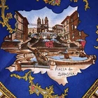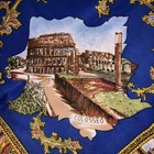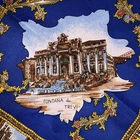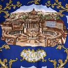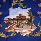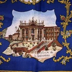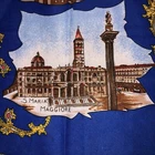 This is a vintage womens souvenir scarf made of 100% Polyester in Italy. It features popular tourist destinations in Rome. At the center is the PIAZZA S. PIETRO. It is surrounded by 8 additional landmarks including BASILICA di S. PAOLO, COLOSSEO, BASILICA di S. GIOVANNI, FONTANA di TREVI, S. Maria MAGGIORE, PIAZZA di SPAGNA, CASTEL S.ANGELO and the ALTARA della PATRIA. The scarf is framed by a series of smaller squares that present even more landmarks. It measures approximately 31 inches square. Scarf is in good vintage pre-owned condition. When held up to the light, I can see a few very small snags mostly along the edges. There is one larger snag that crosses the FONTANA di TREVI on the base and the "A" in ALTARE appears smudged . Please see these photos and enlarge for a closer look. I did not find any holes and it appears the hem is intact all the way around the edges. Piece looks good for it's age. Please review and enlarge all photos for additional details, views and measurements. Shipped via USPS Ground Advantage.