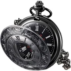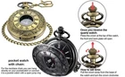 Classic pocket watch: roman numerals scale, very special; Heavily engraved front and back with exquisite patterns, vintage appearance design, really good as a fashion accessory Back case diameter: about 4.6 cm/ 1.8 inch, small size for easy to carry; The chain is 37.5 cm/ 14.8 inch long, good length with a clip on one end to secure the watch Material: alloy; Black dial with white roman numerals scale and pointers, easy to read the time, it's a practical item functioning as a timepiece for everyday use Setting time: pull the crown away from the base of the watch and turn the crown clockwise until reaching the exact time, then press the crown back to its original position A unique style and classic pocket watch, great Birthday/ Wedding/ Christmas/ Anniversary Day/ Fathers Day gifts. Best present for families, friends or teachers. Product Description Classic quartz pocket watch with roman scale and chain belt Delicate and convenient design: Both dial and cover has roman numerals scale, vintage appearance watch cover looks charming. Come with a durable chain belt, convenient to attach to pants or shirts, easy to find and take out, not easy to lose. Wide suitable: The pocket watch is useful to see the time, good gift to send to family members and friends for birthday, wedding, graduation and so on. A good accessory for yourself, suit for both formal and casual dressings, vintage decorations for hanging on the clothes. easy to replace battery Use a blade to pry open the back of the pocket watch to replace the battery Specification: Weight: approx. 62 g Chain length: approx. 37 cm Case diameter: approx. 4.6 cm Case thickness: approx. 1.3 cm (cover included) Package includes: 1 x Pocket watch 1 x Chain