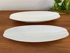 This listing is for a set of two (2) Karelia plates designed by Finnish designer Tapio Wirkkala for Rosenthal. A modern interpretation of a leaf, these plates are perfect in any decor. In great condition. One has a small stain on the underside, shown in photos. Sold as is. See photos. Approximate dimensions are: 11" x 3.5" Returns 30 days. Buyer is responsible for return shipping costs and any loss in value if an item isn't returned in original condition.