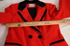 Make a bold and timeless statement with this Vintage Rothchild Red Peacoat Jacket . Crafted from a warm and durable wool/nylon blend , this classic peacoat features a structured silhouette, elegant button detailing, and a sophisticated design that never goes out of style. Perfect for chilly days, this coat adds a touch of vintage charm to any outfit. ✨ Key Features: ✔ Brand: Rothchild ✔ Size: 10 (Check measurements for best fit) ✔ Color: Red – bold, elegant, and eye-catching ✔ Material: Wool/Nylon blend – warm, durable, and high-quality ✔ Style: Classic peacoat design with button-front closure ✔ Fit: Tailored structure for a polished look 💃 Why You’ll Love It: This vintage Rothchild peacoat is a timeless wardrobe staple that combines warmth, sophistication, and vintage elegance . The rich red color makes it a standout piece, while the high-quality fabric and classic silhouette ensure a lasting, stylish addition to your outerwear collection.