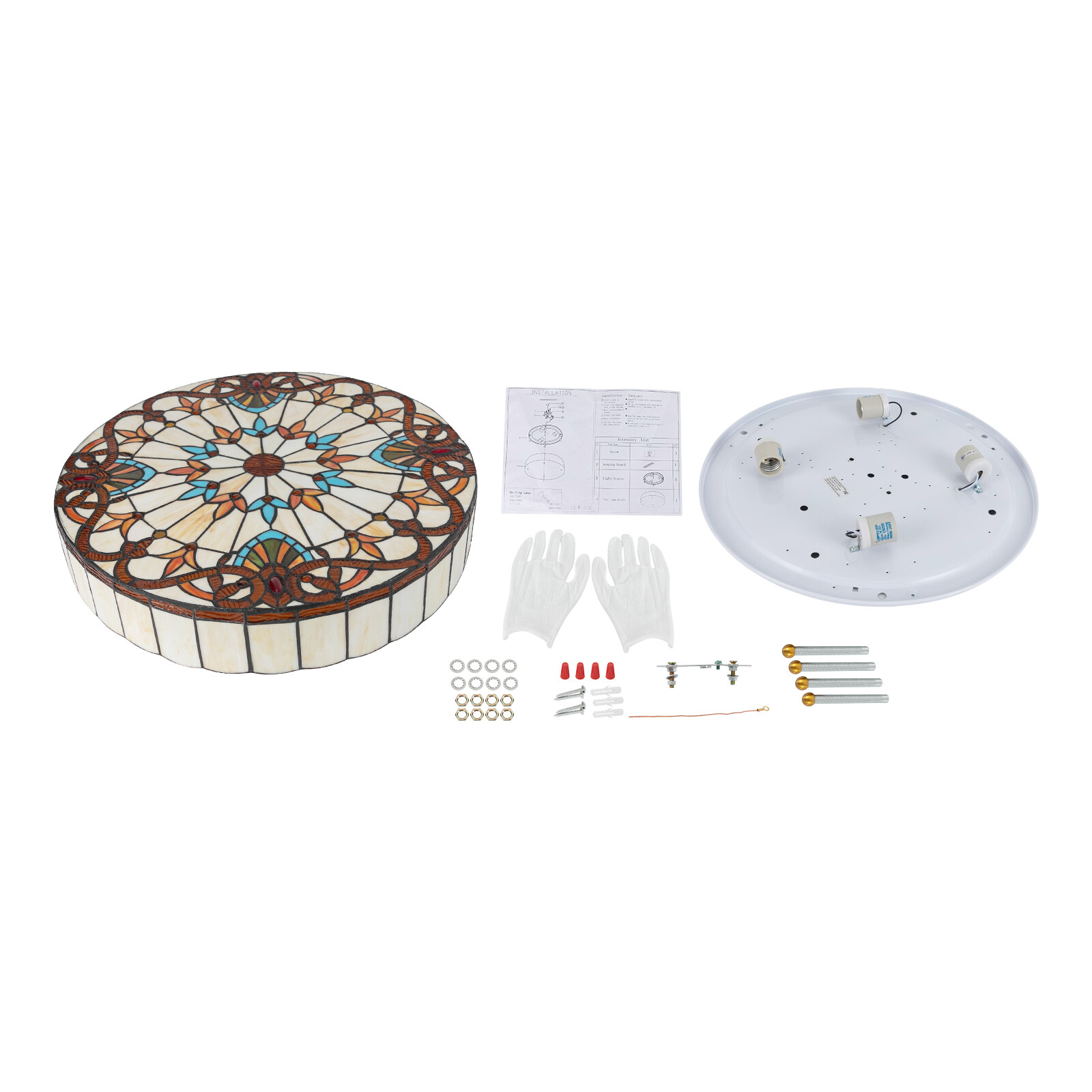 Vintage Round Ceiling Light ?Ceiling Lamp Flush Mount Lighting Fixture NEW Description Description This exquisite ceiling light harmoniously fuses with an array of decorative motifs, ingeniously crafting an ambiance that is both enchantingly romantic and enveloped in a sense of cozy warmth, emblematic of a refined and elegant lifestyle. Crafted from premium copper, tin, and glass, it stands as a testament to longevity. Seize the moment and invite this captivating piece into your abode, where it awaits to illuminate not just your physical surroundings, but also to kindle a spark of sophisticated charm in the very essence of your dwelling. Key Features Long Service Lif e: The copper, tin, glass, and soldering process has high strength, good toughness, good formability, and corrosion resistance, so you can use it for a long time without frequent replacement. High Compatibility : It adapts to 4 E26 bulbs of different types such as LEDs, dimming bulbs, and energy-saving bulbs for easy replacement and creating different atmospheres. Its wide voltage design(100-240V) makes it adapt to different voltage environments. Elegant Appearance : The classic round lampshade is decorated with vintage and colorful patterns to present a unique and sophisticated appearance that mirrors the space and outlines a beautiful artistic flavor, making it an outstanding decorative artwork in the home field. It sublimates the high style of the interior, adding a subtle and exquisite visual enjoyment to the living space. Easy to Install: The simple construction, complete installation parts, and clear English installation diagram will help you install it in a short time. Simple Clean-up : With its simple construction and smooth surface, you can simply wipe off surface dust with a soft cloth. Excellent Gift : The beautiful appearance and good practicality make it a great gift for parents, friends, and lovers on birthdays, holidays, and housewarming. Protective Package: To prevent the product from being damaged during transportation, we packed it with foams to protect your products to the maximum extent possible. Quality Service : We stand behind all our guests and look forward to assisting you with your purchase. It is our pleasure to answer your confusion and questions. The end of the story between us is not "we sell and you buy". Details Colored Glass Lampshade : It filters out a soft, beautiful light that is ideal for creating an ambiance. Smooth Edges : They can care for your skin during cleaning and use and also improve the beauty of the product. Application With an application area of 107.64-161.46ft², it can be widely used in indoor spaces such as bedrooms, dining rooms, living rooms, kitchens, dressing rooms, children's rooms, bars, hotels, restaurants, offices, and so on. Specifications Material: Copper, Tin, Glass Process: Soldering Color: Shown as Picture Style: Vintage Shape: Round Efficiency: E Mount Type: Ceiling Mounted Assembly Required: Yes Voltage: 100-240V Max. Bulb Power: 60W Control Method: Wall Switch, Remote Control (Both Not Included) Light Source Type: 4*E26 Bulbs(Not Included) Applicable Area: 10-15m²/107.64-161.46ft² Product Size(D*H): 50*9cm/19.68*3.54in Package Included 1*Ceiling Light 1 Pair*Gloves 1*English Installation Diagram All Accessories for Assembly Notes Please check the product size before ordering to make sure it fits your room. Please note that the bulbs are not included and you will need to purchase 4 E26 bulbs yourself. Please note that the brightness and the illumination area depend on the power of the lamp. To ensure your safety, we recommend that two people install this lamp together. Please install it by someone with an electrical license if necessary. Please wear the provided gloves and avoid scratching the surface of the lamp when installing. Please make sure that the power supply has been cut off before installation, and conduct a power test before installation. Please use the lamp within the applicable voltage range and clean it regularly. Please cut off the power supply when you clean the light. Please wipe with a soft cotton cloth and do not use household cleaning agents. Please read the manual completely before use, and pay particular attention to the safety instructions included. Please allow the slight color difference caused by the shooting light and 1-3 cm error due to manual measurement, and make sure you do not mind before ordering. Payment Delivery details Terms of sales About us Contact us Payment We accept ebay payment 。 Fees such as import duties, taxes are not included in the item price or shipping costs. These charges are the buyer's responsibility. Delivery details Shipping: 2-9 working days to: USA Terms of sales We maintain high standards of excellence and strive for hundred percent customer satisfaction. Feedback is very important to us. We hope that you contact us immediately before you give neutral or negative feedback, so that we can address your concerns. It is impossible to address issues if we do not know about them! About us Your satis faction is our ultimate goal. We work hard to earn your trust and future business. Our certified technicians have tested each item before shipping. The unit comes with 1 year limited warranty on all manufacturing defects. a) If you receive a defective item, you may return it or ask for a discount. Please contact us within 14 days after you receive the package. b) What you returned must be intact and in its original packaging as re? u. Customer is responsible for shipping costs of the returned item. c) We will cover the cost of shipping back t with the shipping rate indicated in the registration page. We will send you a new unit or refund the full payment you paid. Thank you. Contact us Business Hour Business Hour: Monday To Friday: 8:30 AM to 5:00 PM (Beijing China time) Due to time zones, our reply to your questions may not be immediately. But within above working time, we will reply your email within 24 ho