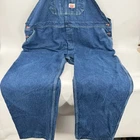 Vintage Round House Bib Overalls Mens 54 (54x30 ACTUAL) Blue Denim Made in USA Button Fly + Pockets Utility Classic Very good vintage condition, HAS FRAYING/ON ONE OF THE STRAPS, see all pictures for views. NO SIZE TAG, SEE MEASUREMENTS TO ENSURE BEST FIT. •Waist: 54" •Inseam: 30" •Rise: 16" •Shoulder to hem: 67" Adjustable •Leg Opening: 10" Flat across Thank you for your purchase!