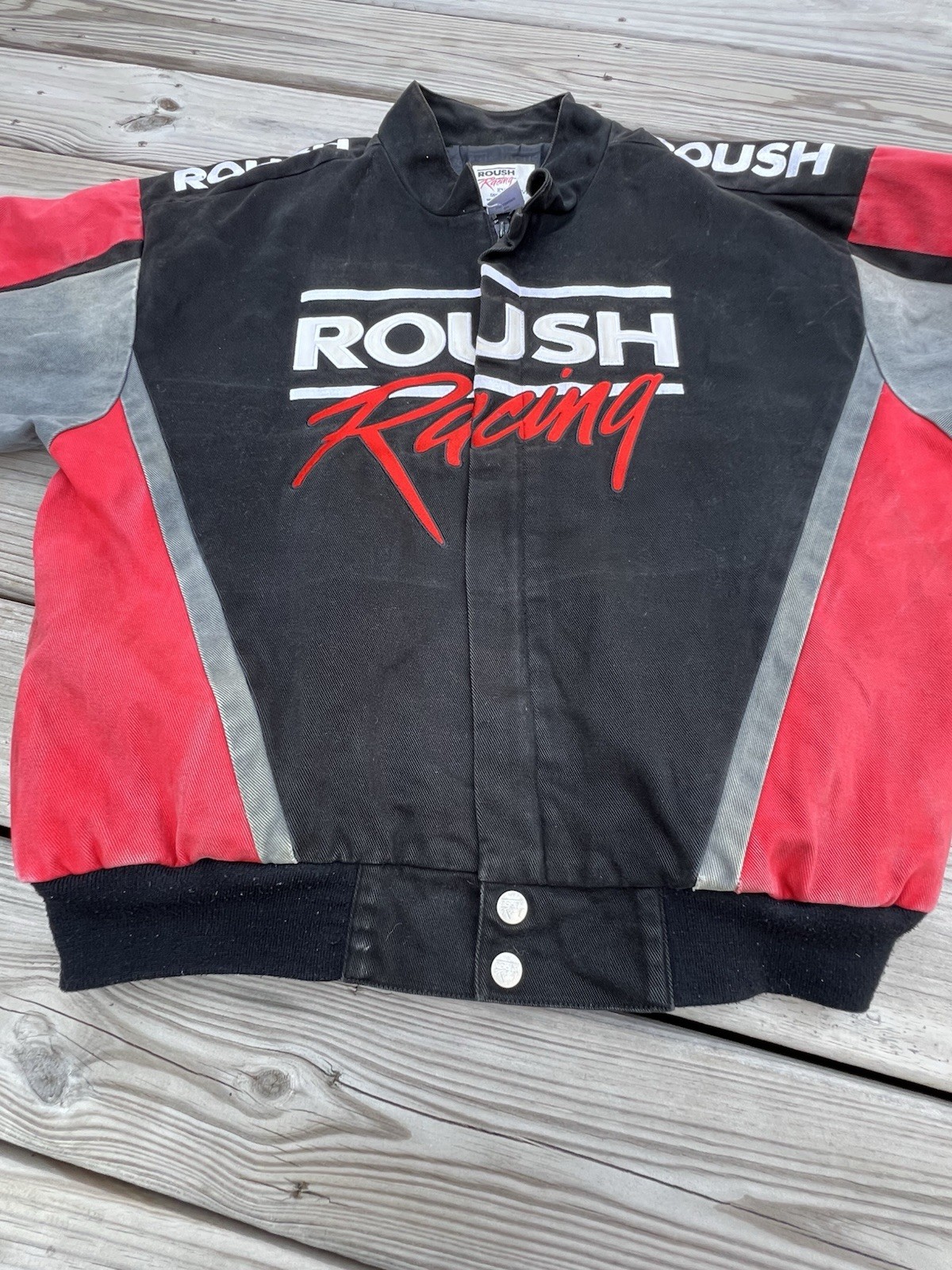 This Roush Racing jacket is a must-have for NASCAR fans! The vintage look gives it so much character, and even with some wear, it’s still in great shape. Fits true to size, super comfortable, and the zip-up design makes it easy to throw on. Perfect for collectors or anyone who loves racing history. Definitely a unique piece worth adding to your wardrobe!