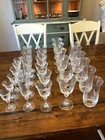Royal Bavarian Crystal Germany drinkware set. Never used. Most items still have original "Royal Bavarian Crystal Germany" sticker on them. Set includes: 6 121/2 oz Beverage Tumblers 6 Water Goblets 6 Wine Glasses 5 Champagne Flutes 6 The Cordial liquor glasses