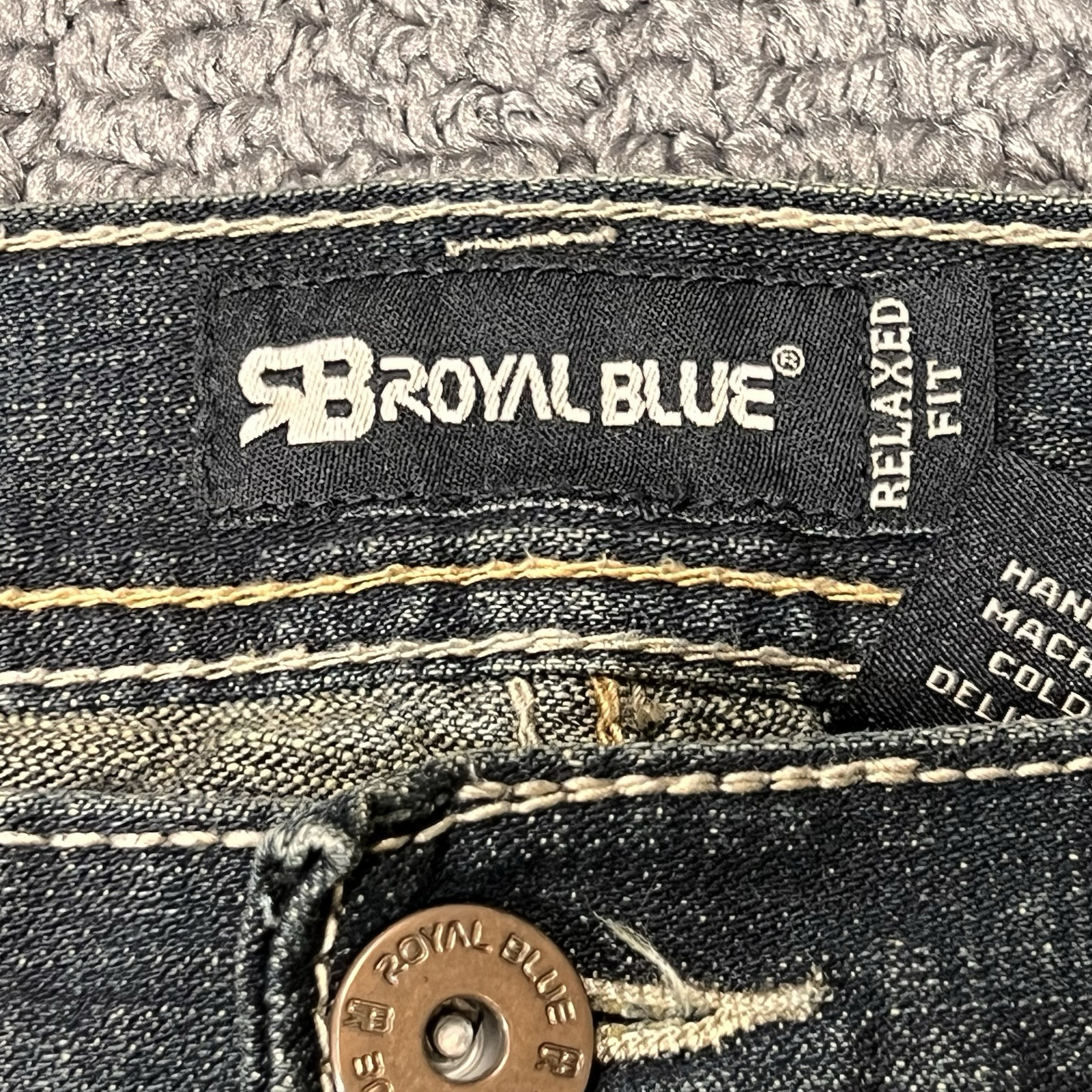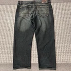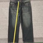 These vintage Royal Blue jeans are a stylish choice for men looking for a relaxed fit with a wide-leg design. Featuring a dark denim wash and a faded finish, these Super Baggy Jeans have a high rise and a 5-pocket design for added convenience. The jeans are accented with buttons, embroidery, and a logo, giving them a hip hop, grunge-inspired look that is perfect for a y2k or 90s aesthetic. Made from comfortable cotton material, these easy-care jeans are ideal for winter, fall, and spring seasons.