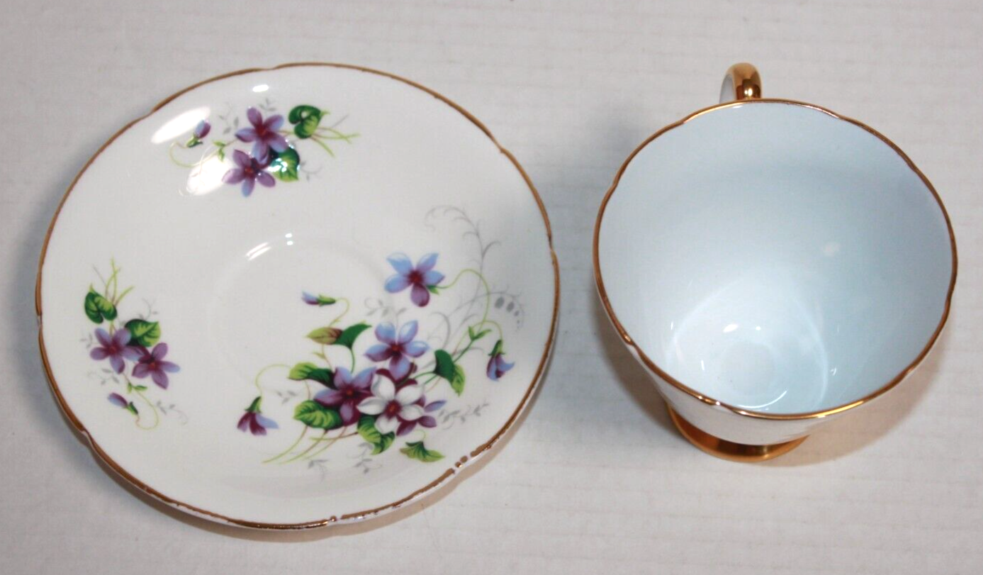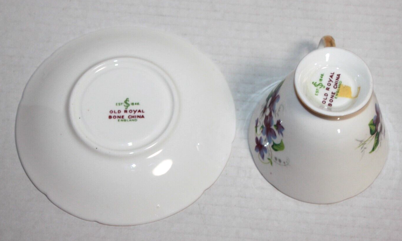 Vintage Old Royal Bone China Teacup & Saucer Violets . cup 3 1/2" dia. saucer 5 1/2". Any photos used are of the item that you will be receiving, they are not stock photos. Will combine shipping costs for multiple purchases. Shipments to the Continental U.S. only. Sorry, No APO or FPO. Please pay promptly. Please visit our Ebay store for more great items. Combined shipping is not automatic. If you're not sure how to do it, Please contact us and we'll be happy to help.