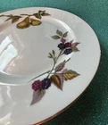 This Royal Worcester Evesham Gold salad plate is a vintage piece from England, featuring a beautiful multi-color pattern on round porcelain. The plate is 8 inches in diameter and .75 inches high, with a glossy finish and printed backstamp. It is both oven and dishwasher safe, making it a practical addition to any dinnerware collection. The plate is part of the Royal Worcester Evesham series and was manufactured in the 1970s. Each plate weighs 11.9 ounces and is perfect for serving salad or any other dish. 12 salad plates available.