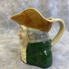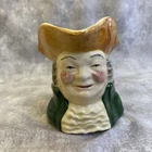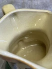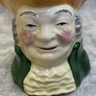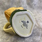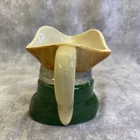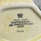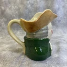 This vintage Sylvac creamer from England features a multicolor hand-painted design on porcelain, part of the Windsor product line by Staffordshire Crown. The creamer stands at 4.25 inches tall and weighs 8 ounces, showcasing the model "Sylvac SQUIRE." Crafted using pottery techniques, it includes a handle that extends the width to 5 inches. This original piece adds a touch of English charm to any dining or display setting.
